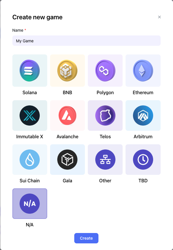 2. Add the **Game name** and select a **Network** or select  *N/A* if not applicable.